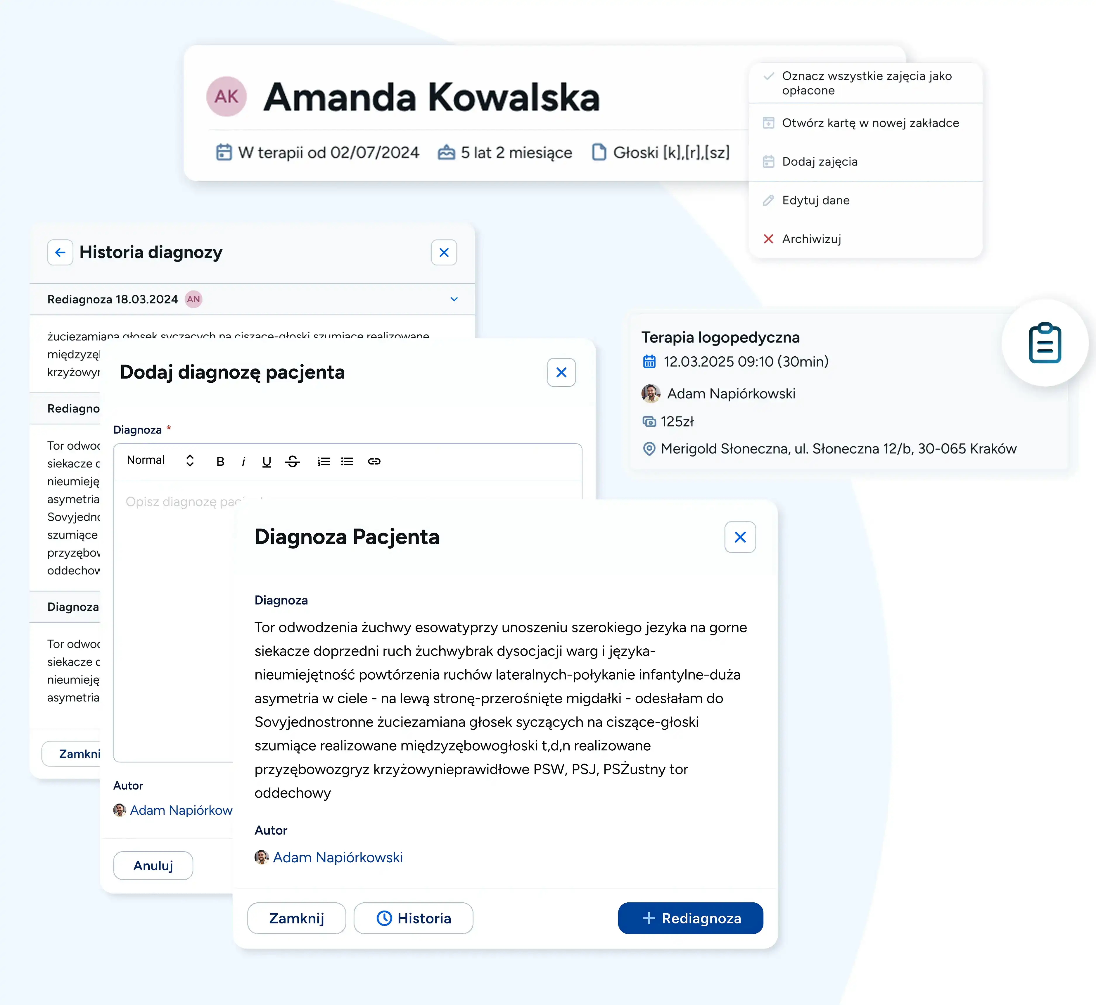 Pełna dokumentacja i postępy terapii w jednej karcie