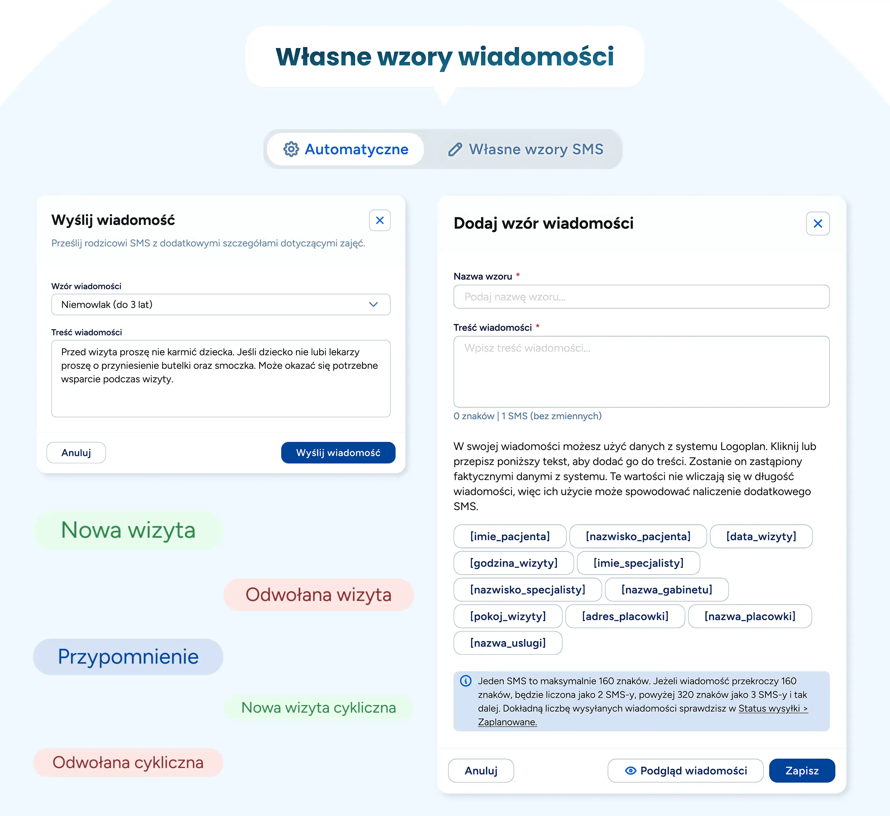 Ustawiaj automatyczne przypomnienia o wizytach, korzystając z gotowych wzorów